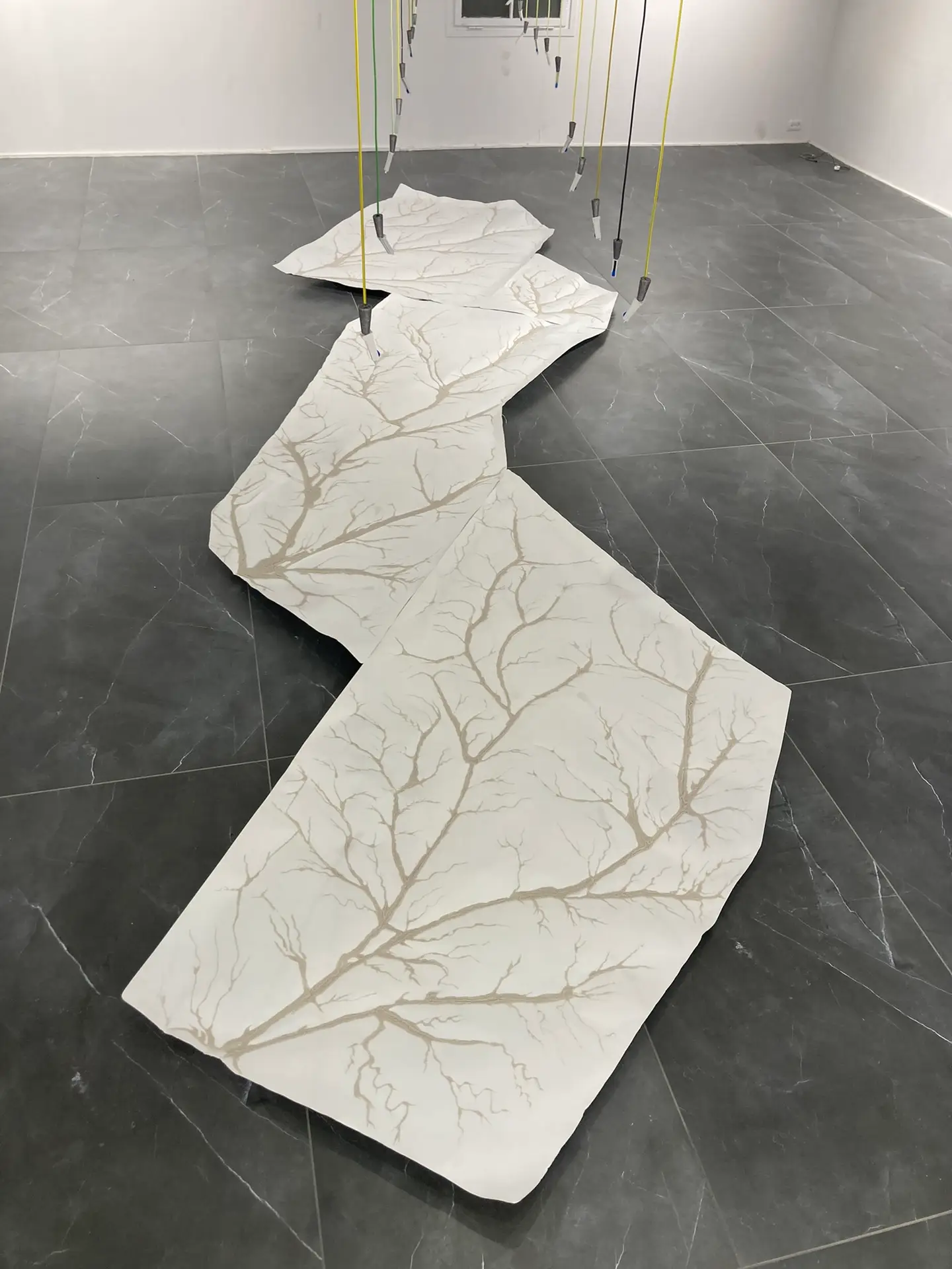 מפת עוטף עזה היתה הבסיס לצורתו של לוח אלומיניום, שאורכו 7 מטרים, עליו הוטבעו פני שטח כטופוגרפיה של תצלום אוויר. השקעים שנוצרו מולאו בחול לבן ויצרו דימויי ערוצי נחלים המרפררים לבתרונות החוליים שבאזור העוטף בכלל ובקיבוץ בארי בפרט. מעל המשטח השתלשלו בקבוקי עירוי מלאים בנוזל ירוק שחור מהם ירדו צינורות טפטפו נוזל שהתנקז לערוצים, נספג בחול וצבע את המשטח במהלך המיצב. צביעתו ההדרגתית בגווני ירוק שחור מקורה בשדות הירוקים באזור בארי בהם ניכרים עדיין שרידי שריפת טרור העפיפונים, מעגל זמן שבין הרס לצמיחה והתחדשות. סאונד טיפות מטפטפות היווה את הדופק והמקצב של המיצב שעוסק בזמן, תהליך והשתנות. אינפוזיות מטרתן לעזור ולהציל חיים אך האם העירוי שהזין את העורקים בעבודה הכיל ברזל וויטמינים מרפאים או צבע רעיל? העבודה עוסקת ביחסים בין המרכז לפריפריה הנגבית, בין חיים ומוות.